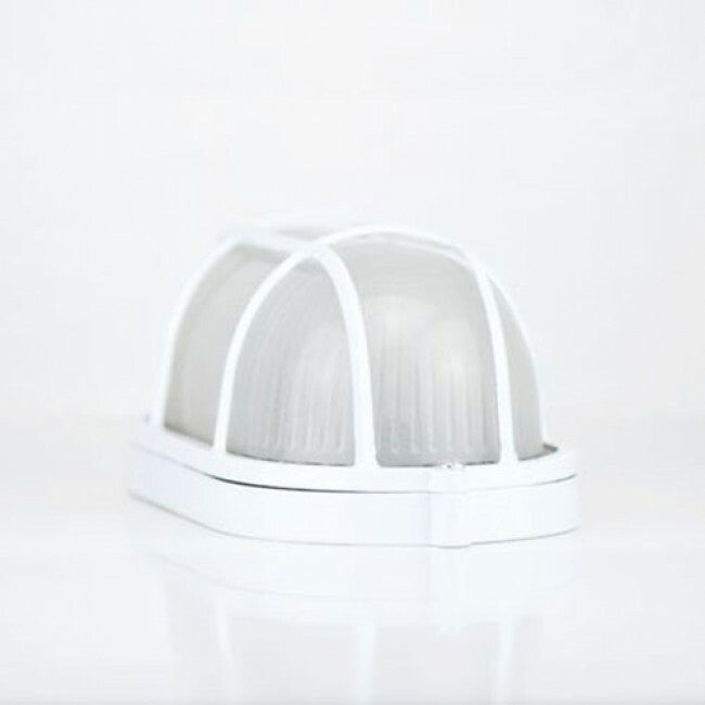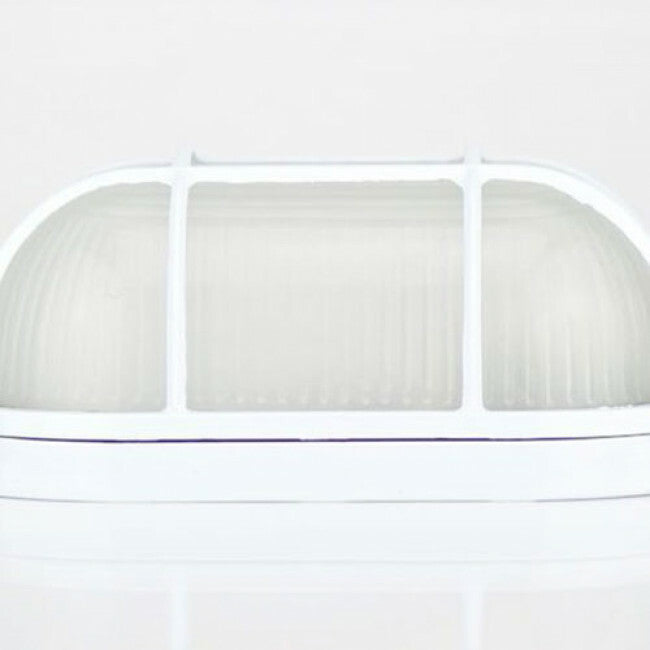 Diese ovale Bullseye-Wand- oder Deckenleuchte aus Kunststoff bietet sowohl im Innen- als auch im Außenbereich ein beruhigendes Gefühl von Sicherheit. Die wartungsfreie Leuchte ist aus langlebigem, weißem Kunststoff gefertigt, während das Lampenglas aus Riffelglas besteht, um Verfärbungen durch UV-Strahlung vorzubeugen. Bestellen Sie diese robuste, wasserdichte Bully-Lampe jetzt besonders günstig auf unserer Website und beleuchten Sie Ihre Räume zuverlässig und stilvoll! Merkmale: