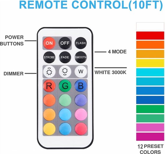 This is an ideal battery-powered cabinet or stair light (now in a handy 3-pack). You can choose from multiple shades of white, including warm and cool tones. In addition, you can also choose from sixteen other different colors. You can control this quickly and easily with the included remote control. The included magnet and 3M stickers allow you to attach the lamp anywhere. The lamp is completely wireless. It can be used as a night light next to the bed, in the closet, as a kitchen light, or as a basement light, for example.