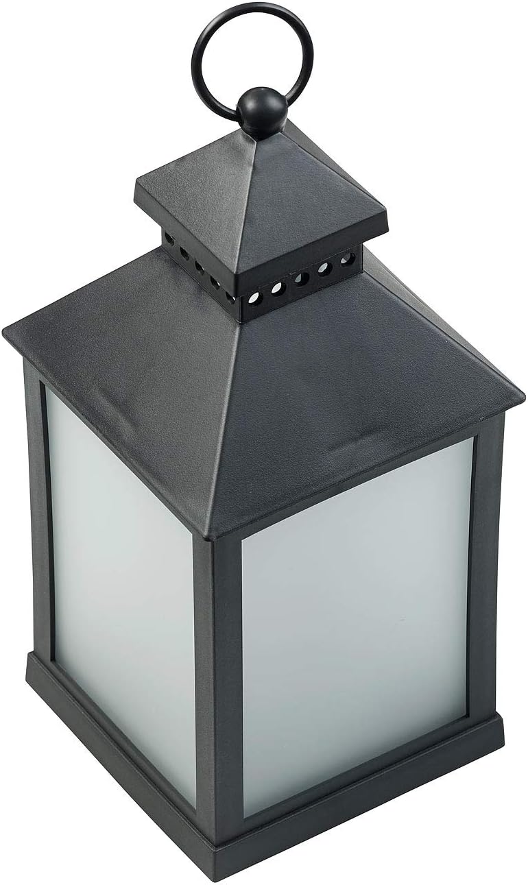 The classic lantern features a natural LED flame effect and a built-in timer. The light burns for 6 hours before automatically shutting off, and then comes back on after 18 hours.