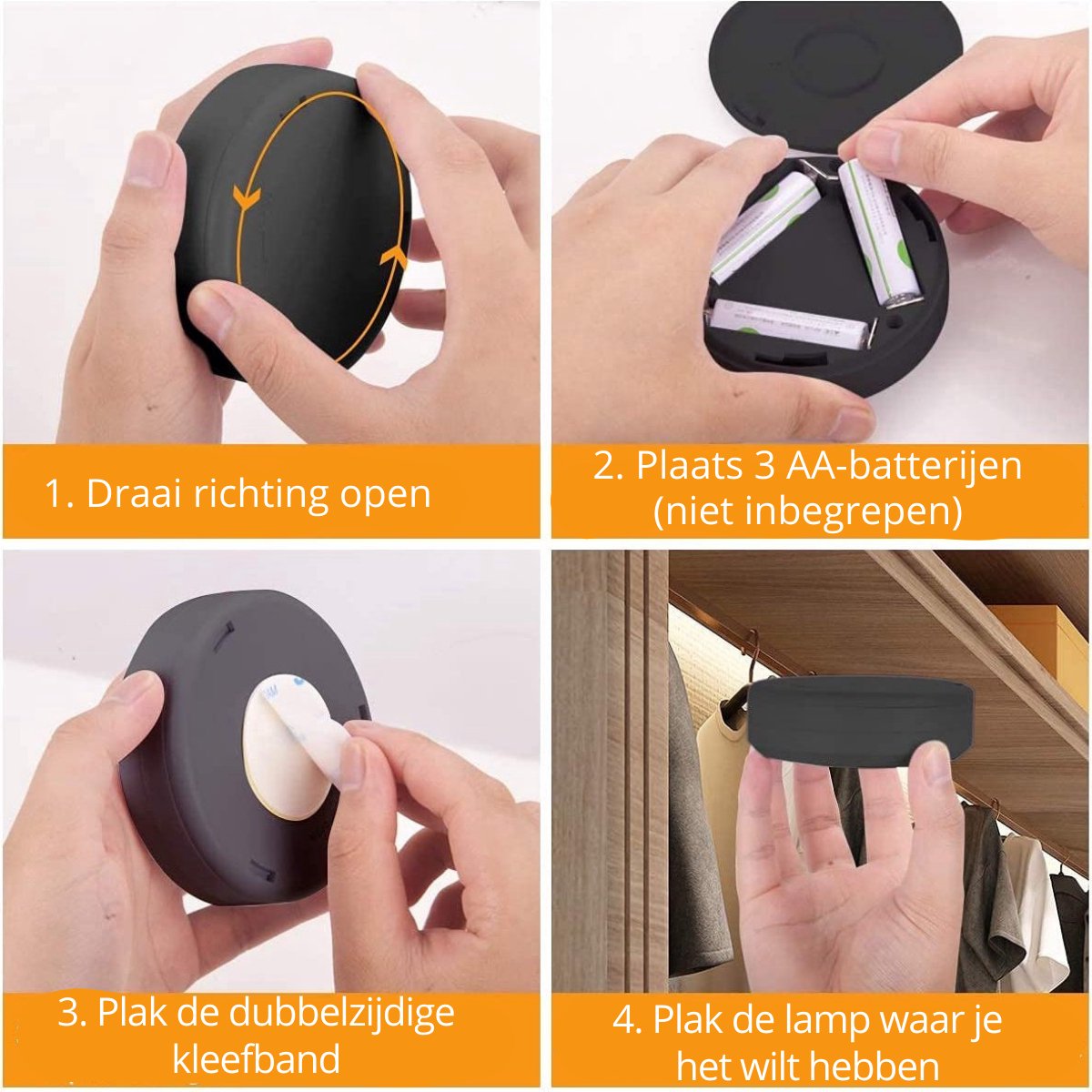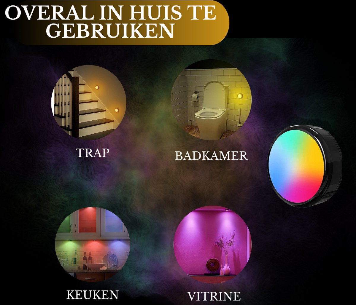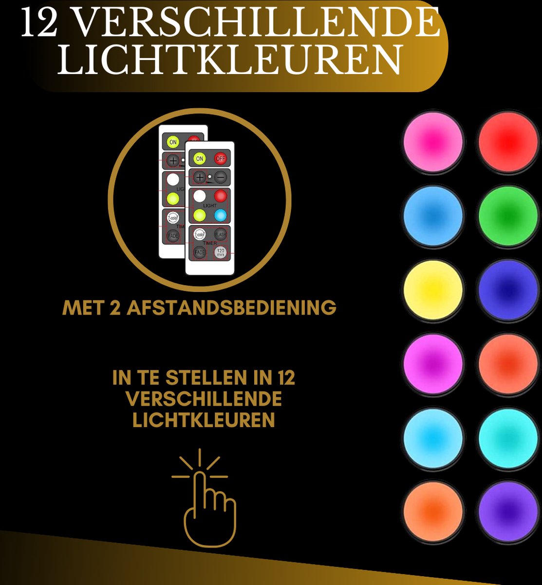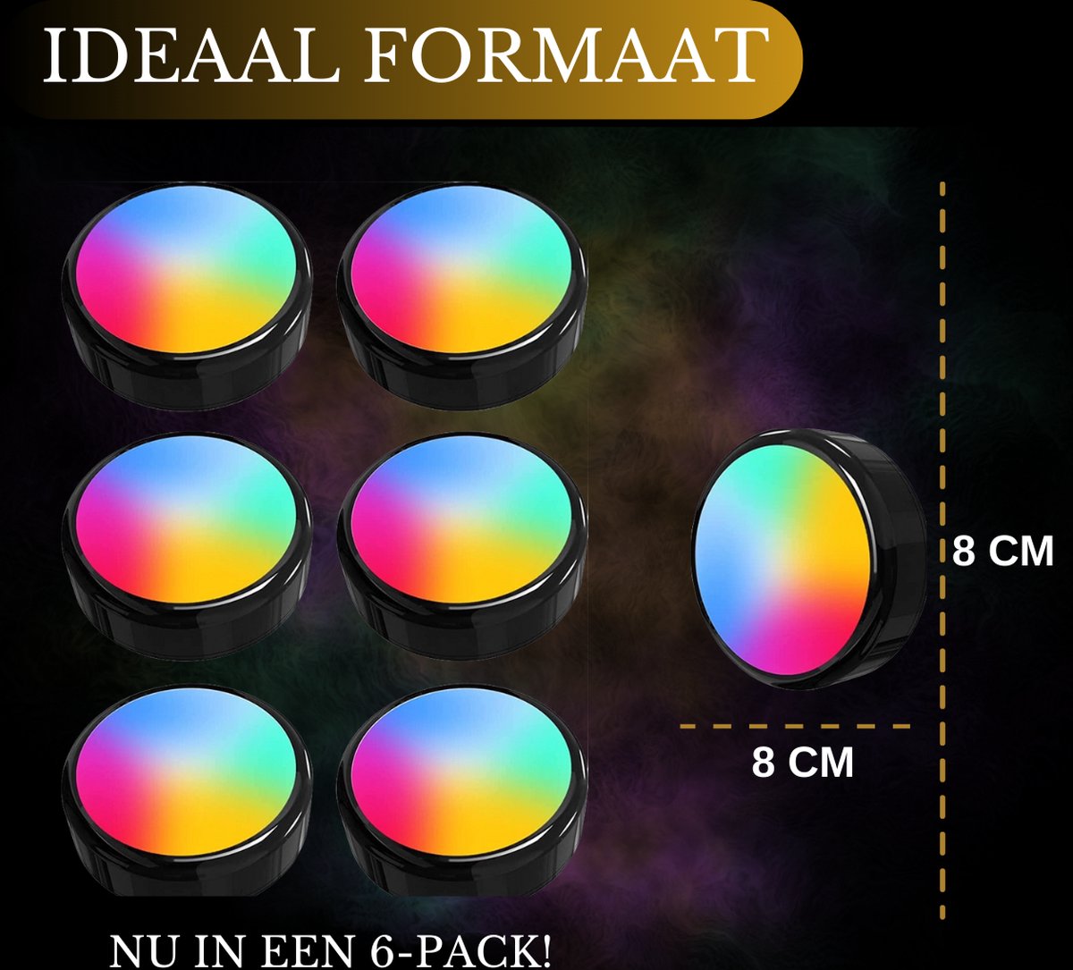 Deze kastlampen en traplampen op batterijen zijn de perfecte aanvulling voor elke ruimte. Met een handige 6-pack bundel bieden ze diverse verlichtingsopties. Kies uit verschillende tinten wit, waaronder warme en koude tinten, of exploreer de mogelijkheden van zestien andere kleuren. Bedien dit alles moeiteloos met de bijgeleverde afstandsbediening. Met de meegeleverde magneet en 3M stickers bevestig je de lampen overal waar je maar wilt. Deze lampen zijn volledig draadloos en veelzijdig inzetbaar, of het nu als nachtlamp naast het bed, in de kast, als keukenlamp of als kelderlamp is. Handige Magneet Bij de lamp wordt een magneet met een 3M sticker geleverd, zodat je deze magneet op elke gewenste plek kunt aanbrengen. De lamp zelf is uitgerust met een ingebouwde magneet, waardoor je de lamp eenvoudig kunt plaatsen en verwijderen. Hierdoor kun je de lamp moeiteloos opladen terwijl de magneet op zijn plaats blijft. Dankzij deze eigenschap kan de lamp zelfs dienen als handige zaklamp. Voordelen en Kenmerken