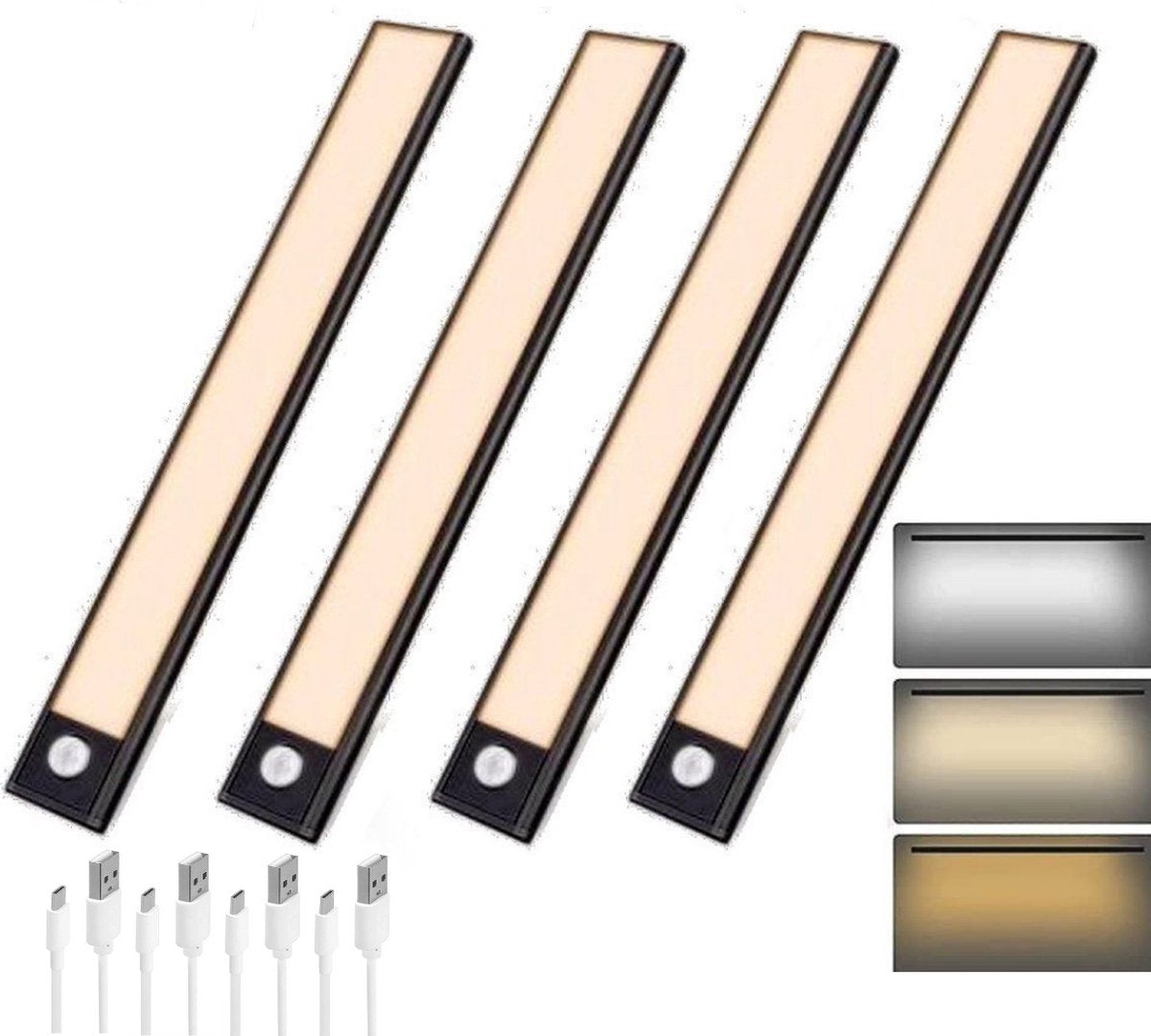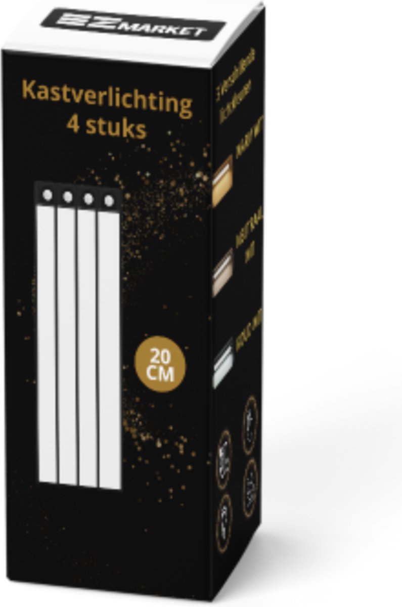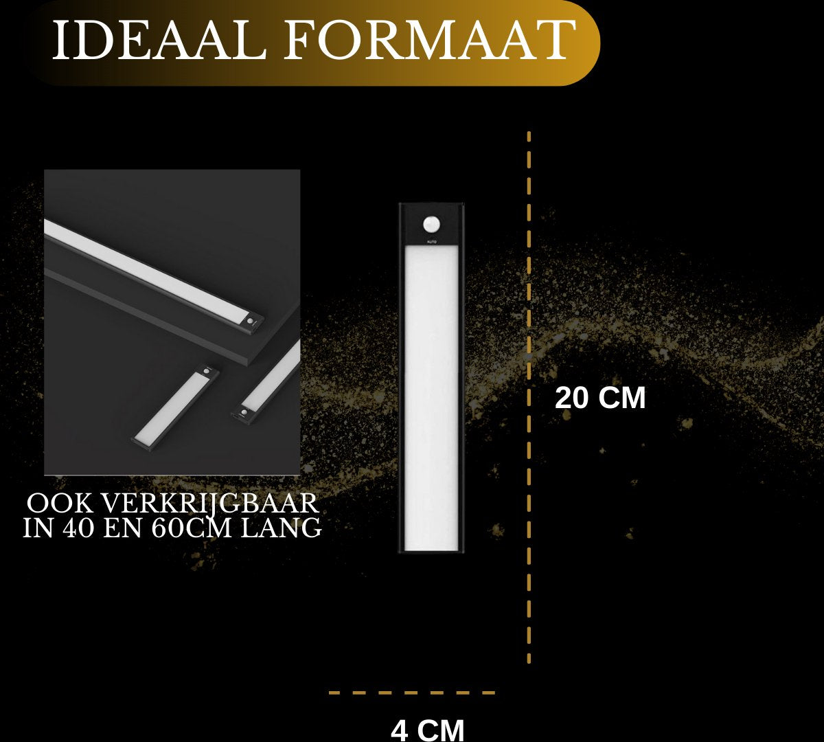Hoogwaardige kwaliteit onderbouwverlichting (Nu in een 4-stuks voordeelpack), speciaal ontworpen voor gebruik in keukens, kasten en vitrines maar ook zeer handig als nachtlampje. In deze luxe onderbouwverlichting zijn 60 led lampjes verwerkt die optimaal licht geven. Deze veelzijdige verlichtingsoplossing van 20 centimeter lang dient ook als betrouwbare trap- en gangverlichting, waardoor het veiliger en sfeervoller wordt. Instelbare Helderheid en Design Met een indrukwekkende helderheid van 180 lumen biedt deze onderbouwverlichting voldoende licht om donkere ruimtes te verlichten. Bovendien is de helderheid volledig aanpasbaar, variërend van een zachte gloed tot helder daglicht, dankzij de dimbaarheid van 0% tot 100%. De onderbouwverlichting is vervaardigd uit hoogwaardig aluminium. Met een slank profiel van slechts 0,8 cm dik voegt het zich naadloos in uw interieur. Verlichting op Maat Kies uit drie verschillende lichtkleuren om de juiste sfeer te creëren voor elke gelegenheid. Met 2700K, 4000K en 6000K kunt u moeiteloos schakelen tussen warme, neutrale en koele verlichting door eenvoudigweg de aan/uit knop ingedrukt te houden. Drie Handige Modi Deze onderbouwverlichting heeft drie handige modi. In de eerste modus brandt de lamp constant, met een gebruiksduur van 6 uur. De tweede modus activeert de bewegingssensor, die bij detectie van beweging binnen 120 graden en 5 meter inschakelt en na 20 seconden zonder beweging weer uitschakelt met een gebruiksduur bij sporadisch gebruik van 30 dagen. De derde modus biedt een snelle uitschakeling. Oplaadbaar en Krachtig U hoeft zich geen zorgen te maken over batterijen, want onze lamp is uitgerust met een krachtige 1500 mAh accu. Met een constante brandtijd van 6 uur en een indrukwekkende standby-tijd van 30 dagen bij sporadisch gebruik, is de verlichting altijd klaar wanneer u deze nodig hebt. Eenvoudige Installatie Montage is een fluitje van een cent. Begin met het verwijderen van de stickers van de clips en bevestig deze stevig op een gladde ondergrond. Vervolgens kunt u de onderbouwverlichting moeiteloos op de clips plaatsen, dankzij het magnetische ontwerp. Geen gedoe met draden of gereedschap! Nederlandse Handleiding Inbegrepen Voor uw gemak wordt een gedetailleerde Nederlandse handleiding meegeleverd, zodat u de verlichting moeiteloos kunt installeren en aanpassen aan uw wensen. Specificaties: