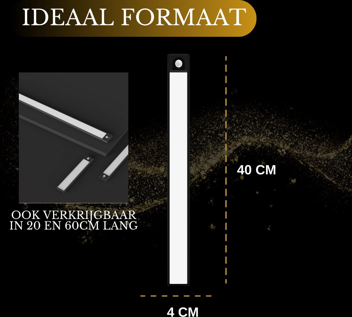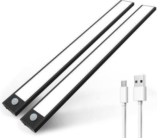 Hoogwaardige kwaliteit onderbouwverlichting (Nu in een 2-stuks voordeelpack), speciaal ontworpen voor gebruik in keukens, kasten en vitrines maar ook zeer handig als nachtlampje. In deze luxe onderbouwverlichting zijn 60 led lampjes verwerkt die optimaal licht geven. Deze veelzijdige verlichtingsoplossing van 40 centimeter lang dient ook als betrouwbare trap- en gangverlichting, waardoor het veiliger en sfeervoller wordt. Instelbare Helderheid en Design Met een indrukwekkende helderheid van 250 lumen biedt deze onderbouwverlichting voldoende licht om donkere ruimtes te verlichten. Bovendien is de helderheid volledig aanpasbaar, variërend van een zachte gloed tot helder daglicht, dankzij de dimbaarheid van 0% tot 100%. De onderbouwverlichting is vervaardigd uit hoogwaardig aluminium. Met een slank profiel van slechts 0,8 cm dik voegt het zich naadloos in uw interieur. Verlichting op Maat Kies uit drie verschillende lichtkleuren om de juiste sfeer te creëren voor elke gelegenheid. Met 2700K, 4000K en 6000K kunt u moeiteloos schakelen tussen warme, neutrale en koele verlichting door eenvoudigweg de aan/uit knop ingedrukt te houden. Drie Handige Modi Deze onderbouwverlichting heeft drie handige modi. In de eerste modus brandt de lamp constant, met een gebruiksduur van 6 uur. De tweede modus activeert de bewegingssensor, die bij detectie van beweging binnen 120 graden en 5 meter inschakelt en na 20 seconden zonder beweging weer uitschakelt met een gebruiksduur bij sporadisch gebruik van 30 dagen. De derde modus biedt een snelle uitschakeling. Oplaadbaar en Krachtig U hoeft zich geen zorgen te maken over batterijen, want onze lamp is uitgerust met een krachtige 1500 mAh accu. Met een constante brandtijd van 6 uur en een indrukwekkende standby-tijd van 30 dagen bij sporadisch gebruik, is de verlichting altijd klaar wanneer u deze nodig hebt. Eenvoudige Installatie Montage is een fluitje van een cent. Begin met het verwijderen van de stickers van de clips en bevestig deze stevig op een gladde ondergrond. Vervolgens kunt u de onderbouwverlichting moeiteloos op de clips plaatsen, dankzij het magnetische ontwerp. Geen gedoe met draden of gereedschap! Nederlandse Handleiding Inbegrepen Voor uw gemak wordt een gedetailleerde Nederlandse handleiding meegeleverd, zodat u de verlichting moeiteloos kunt installeren en aanpassen aan uw wensen. Specificaties: