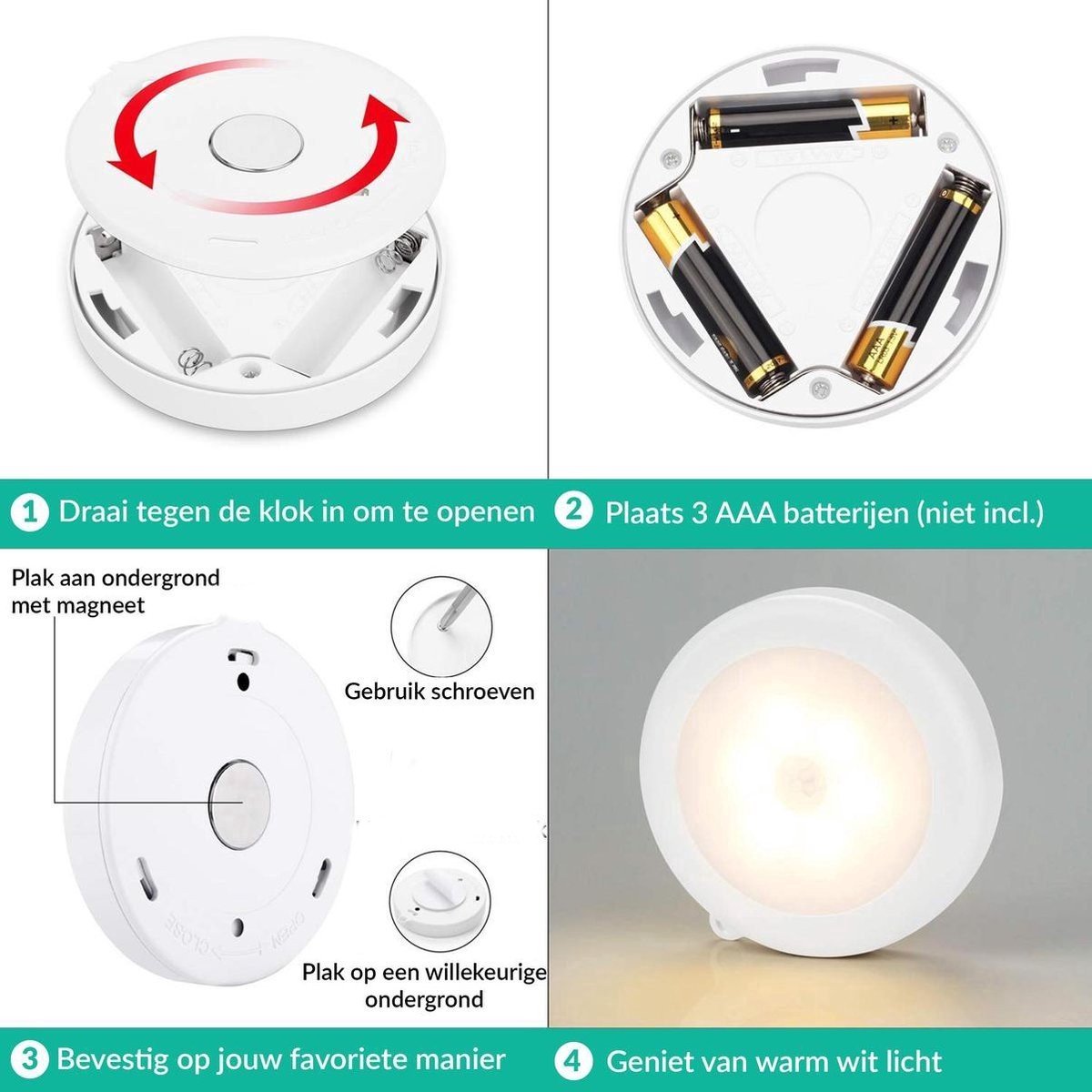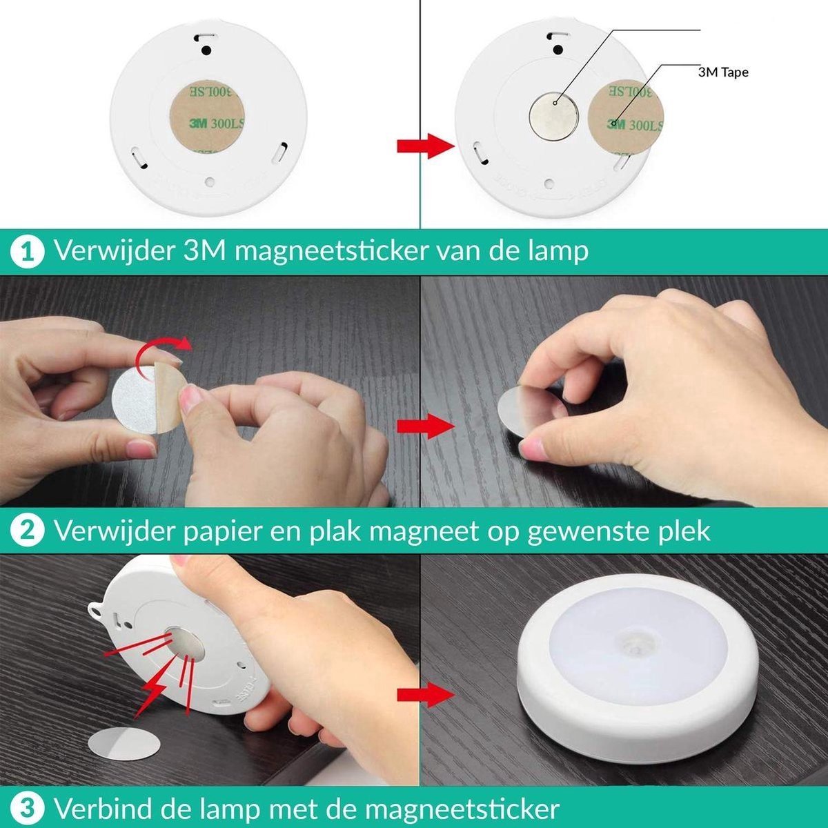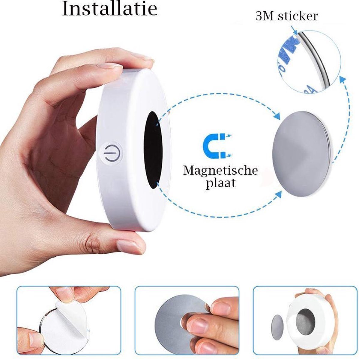 De nachtlampje met bewegingssensor met een diameter van 8,5CM , op 'auto' schakelt nachtlampje automatisch in zodra het beweging detecteert in een straal van 3 meter. De verlichting schakelt na 20 seconden automatisch uit. De nachtlampje beschikt over een ingebouwde oplaadbare accu en is volledig draadloos. Op 'on' blijft de lamp constant aan totdat je weer op 'off' drukt, verschillende functies met de zelfde nachtlampje! Flexibel en gemakkelijk te monteren met de meegeleverde magneetstickers. Een ideale oplossing voor in de kast, keuken en andere ruimtes! Met magneet Met de nachtlampje wordt ook een magneet met 3M sticker geleverd. U kunt de magneet opplakken waar u dat wenst. In de lamp zit ook een magneet (ingebouwd). De lamp kan door middel van de magneet geplaatst worden. Zodoende kan de lamp los opgeladen moet worden en kan de magneet op de bestemde plaats blijven zitten. De lamp kan eventueel ook gebruikt worden als zaklamp.