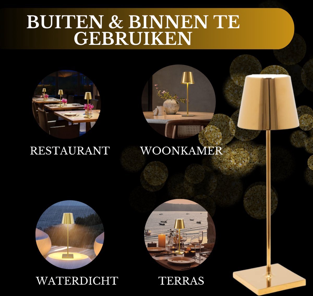 Een Lamp voor Elke Sfeer: Met de oplaadbare tafellamp haal je veelzijdigheid en elegantie in huis. De aanpasbare verlichting, stevige constructie en stijlvol ontwerp maken het tot een onmisbaar onderdeel van je omgeving, of dat nu binnen of buiten is.